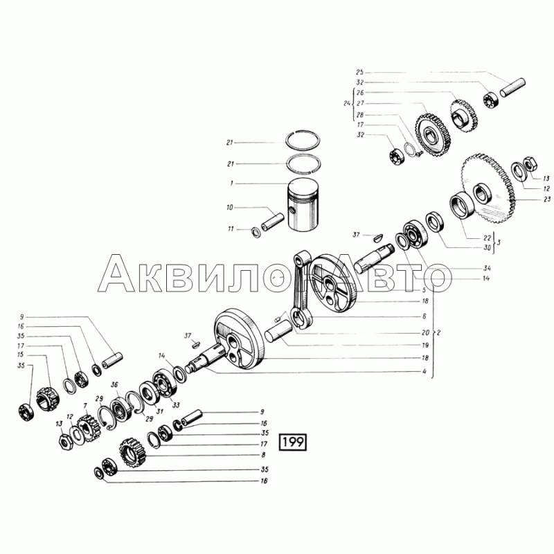 Кривошипно-шатунный механизм СМД-21, -22, 22А, 23, 23.01, 23.02, 24, 24.01, 24.02