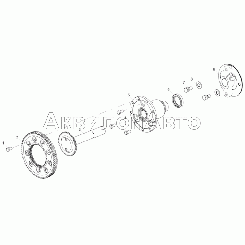 5 7511.1029120-10 Ось ведомой шестерни с подшипником и маховиком в сборе