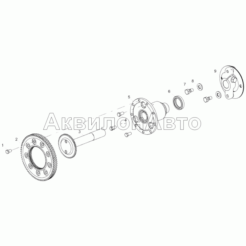 5 7511.1029120-10 Ось ведомой шестерни с подшипником и маховиком в сборе