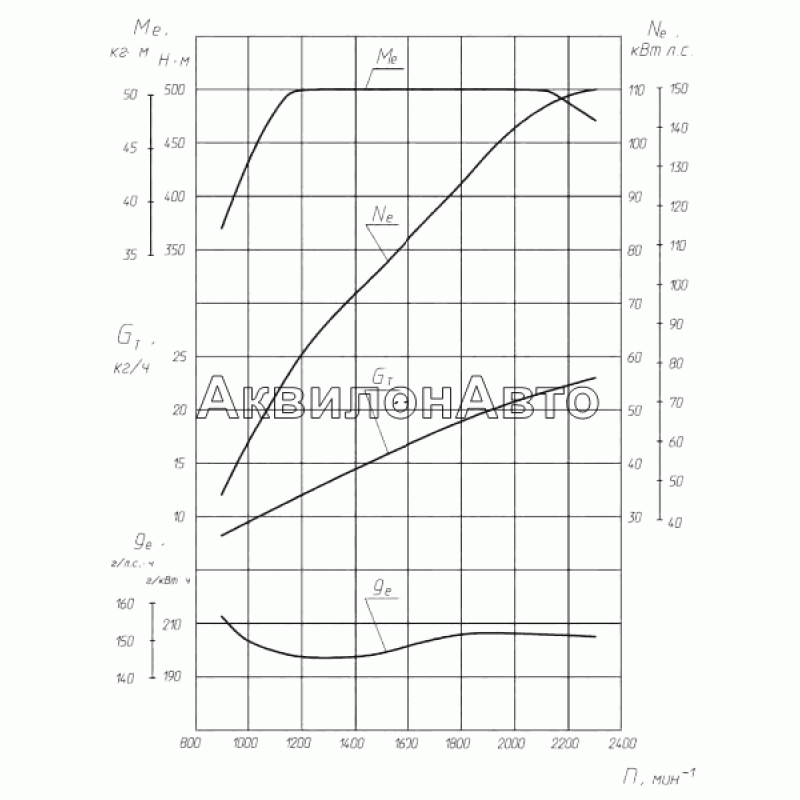 Скоростная характеристика двигателей ЯМЗ-53443-10, ЯМЗ-53443-20, ЯМЗ-53443-22, ЯМЗ-53443-30 и их комплектаций