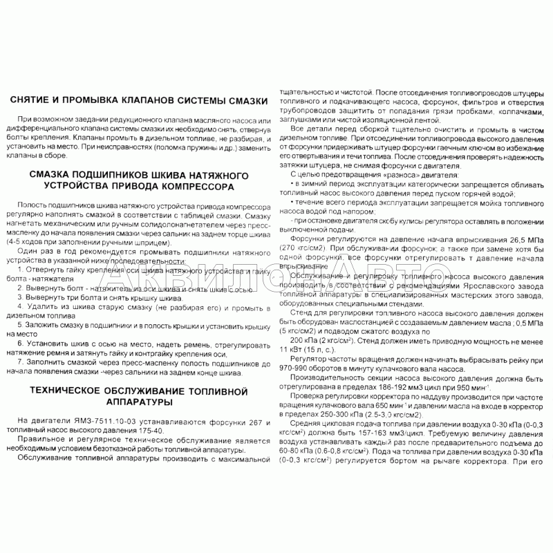 Снятие и промывка клапанов системы смазки. Смазка подшипников шкива натяжного устройства привода компрессора. Тех. обслуживание топливной аппаратуры.