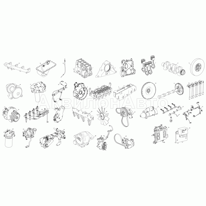 • Схема деления двигателя ЯМЗ-5344-10 на сбороные единицы