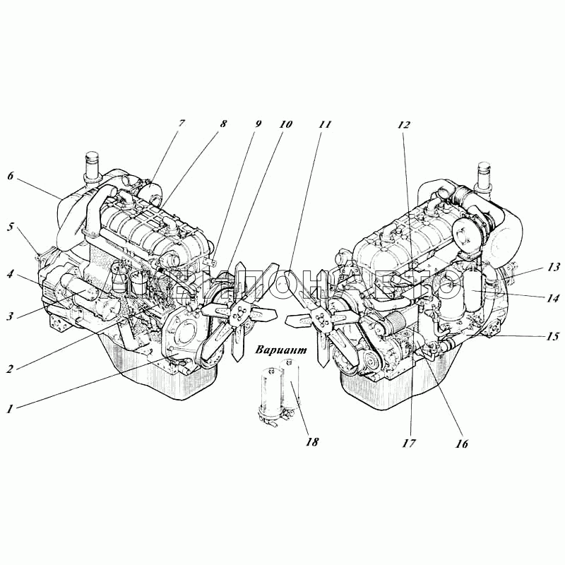 | 11 | 442-55-13с1-01 | Насос водяной, вентилятор и термостат | |