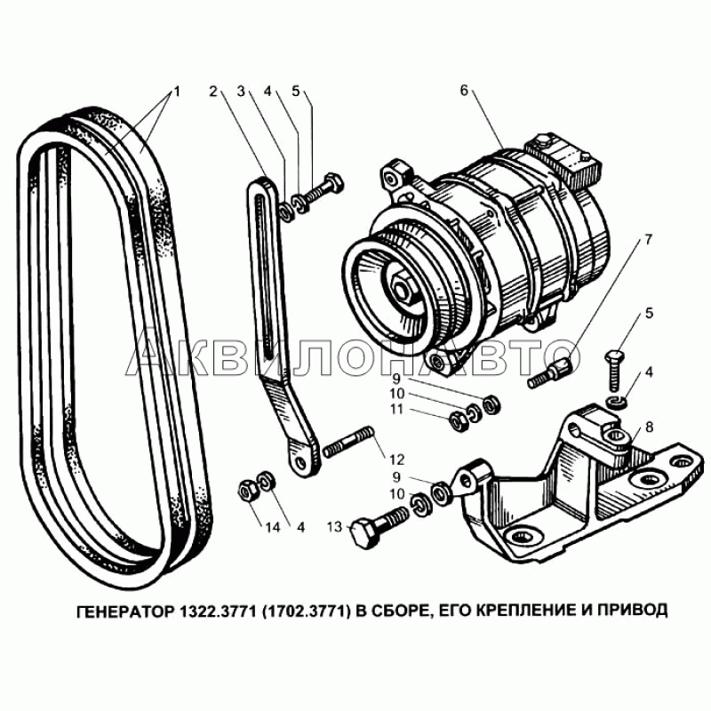 • Генератор 1322.3771 (1702.3771) в сборе, его крепление и привод