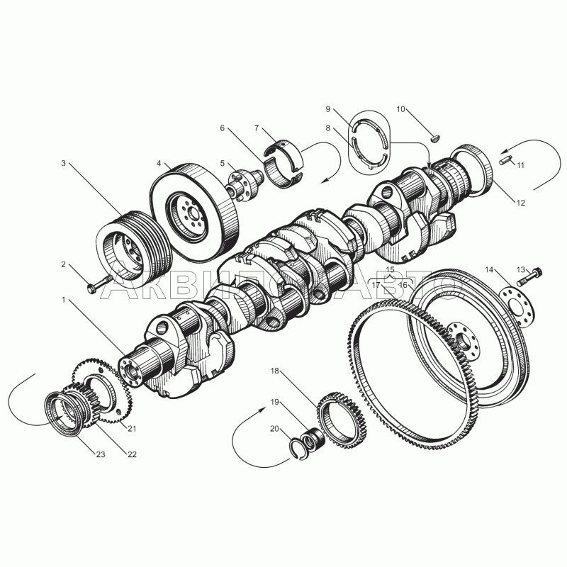 | 850.1000107 | Вал коленчатый с коренными и шатунными вкладышами, комплект на один двигатель | ||