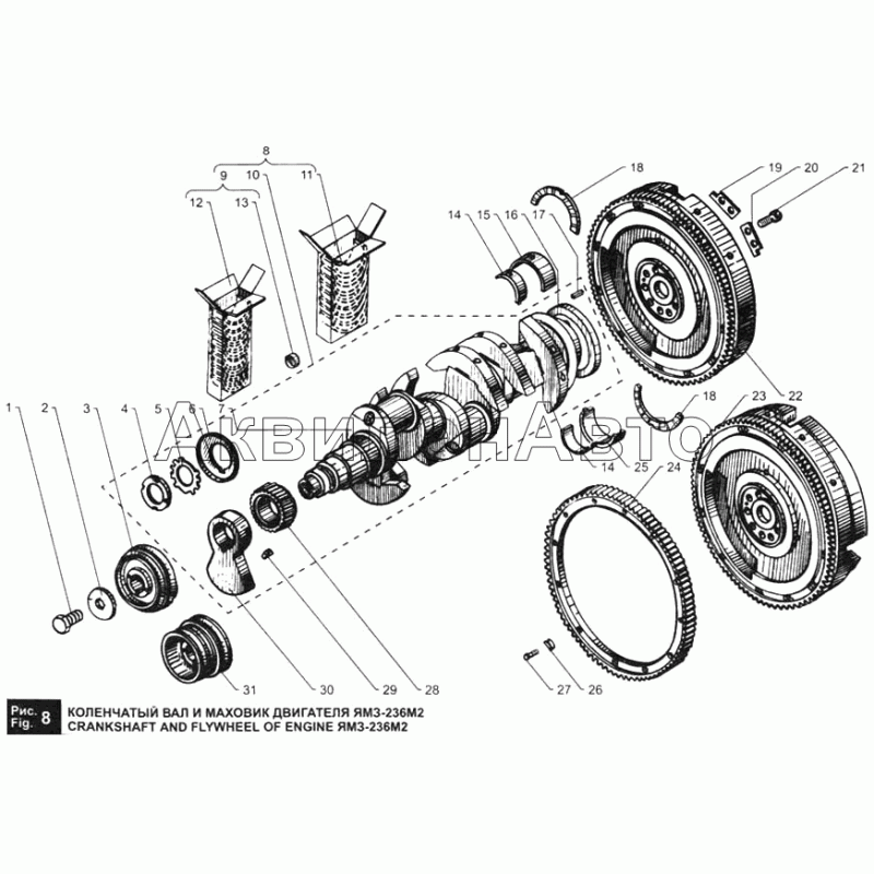 | 8 | 236-1000107-В4 | Вал коленчатый с вкладышами подшипников, комплект | |