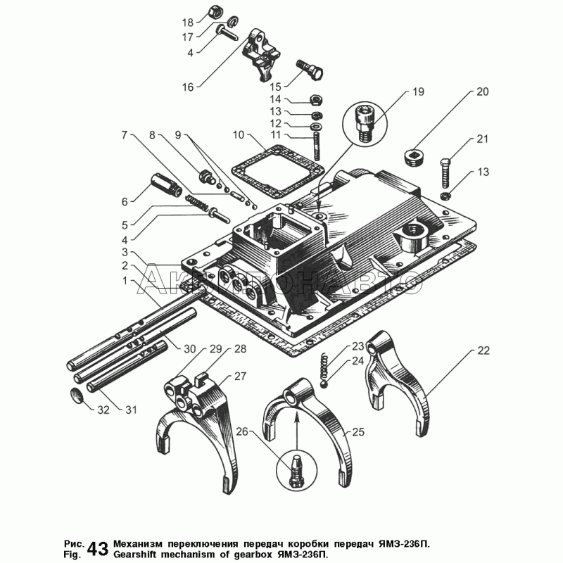 Механизм переключения передач коробки передач ЯМЗ-236П