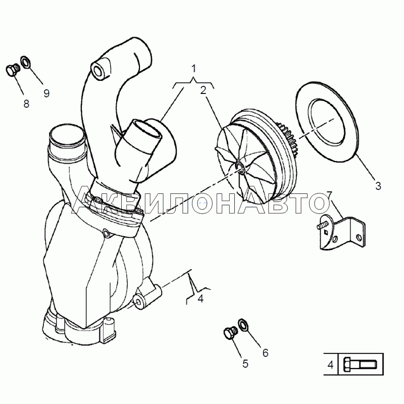 | 2 | 650.1307013 | Корпус подшипника с осью, крыльчаткой и шестерней водяного насоса в сборе | |