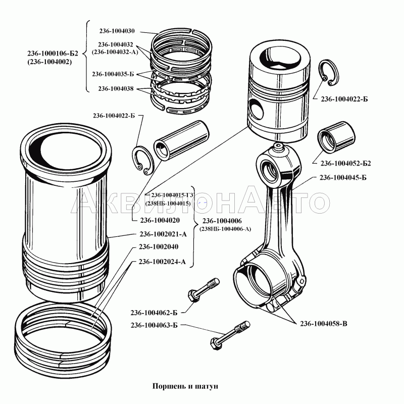 | 236-1004006 | Гильза, поршень, палец, кольца (комплект на один цилиндр) | ||