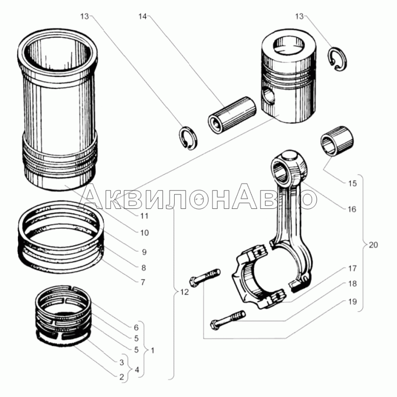 | 12 | 236-1004005-Б2 | Гильза, поршень, уплотнительные и поршневые кольца |