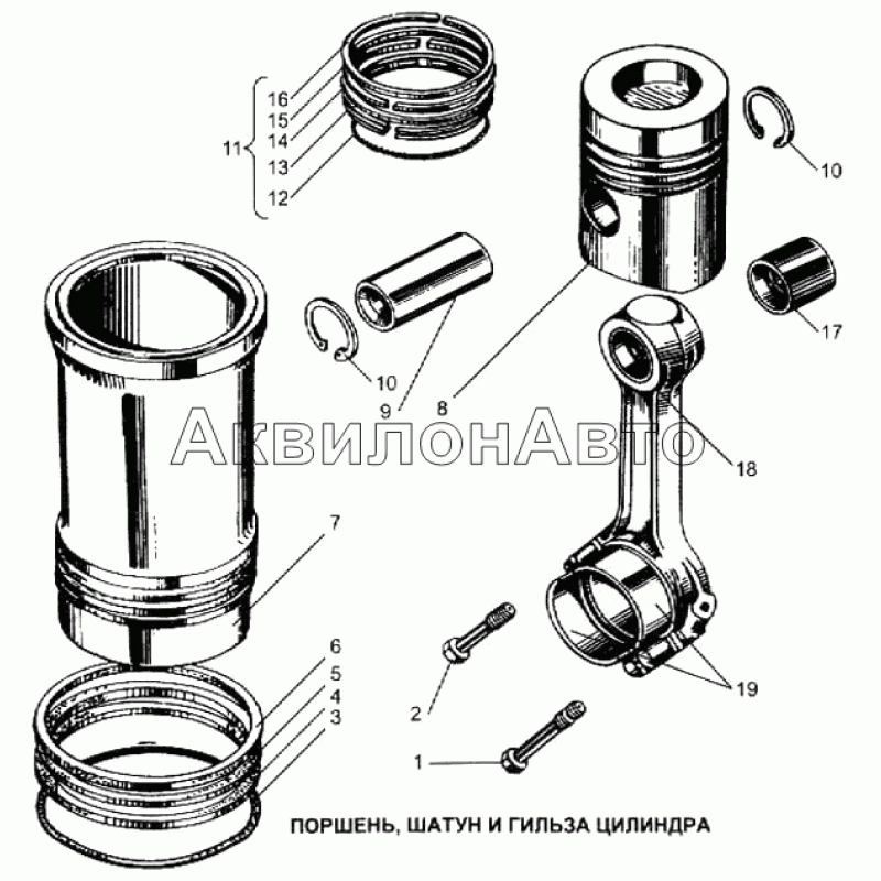 Поршень, шатун и гильза цилиндра