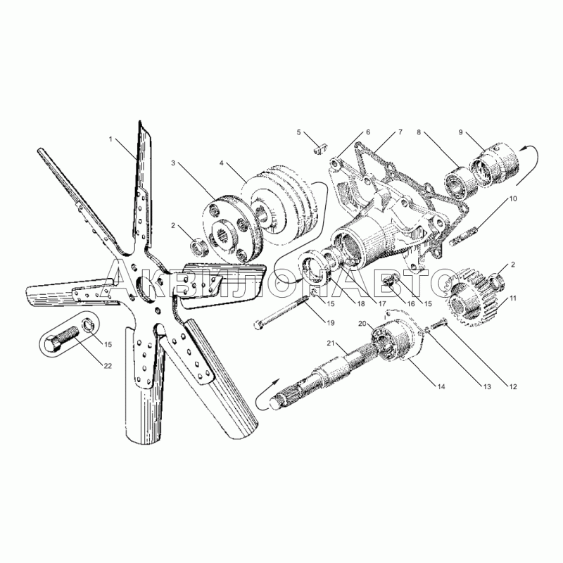 Привод вентилятора двигателей ЯМЗ-238ДЕ-10, ЯМЗ-238ДЕ-11