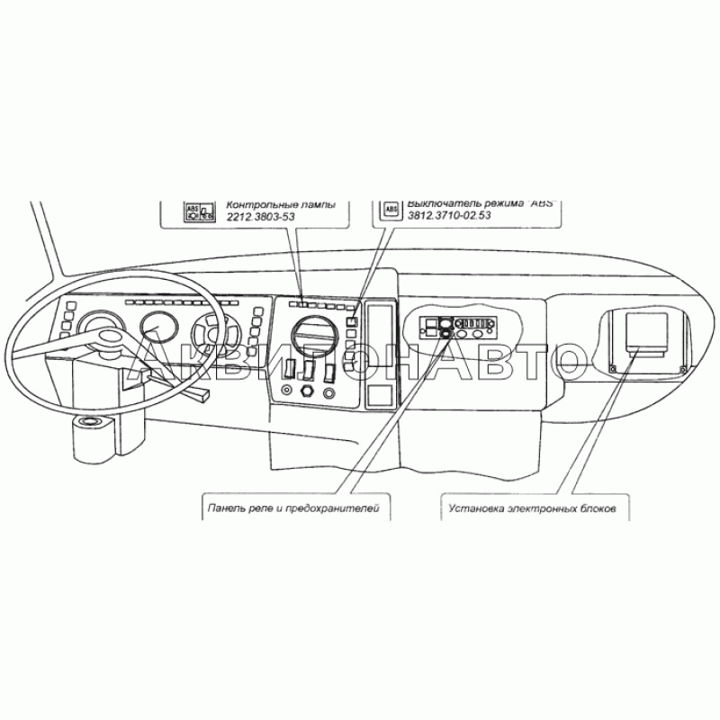 Расположение элементов АБС в кабине автомобилей семейства МАЗ-4370