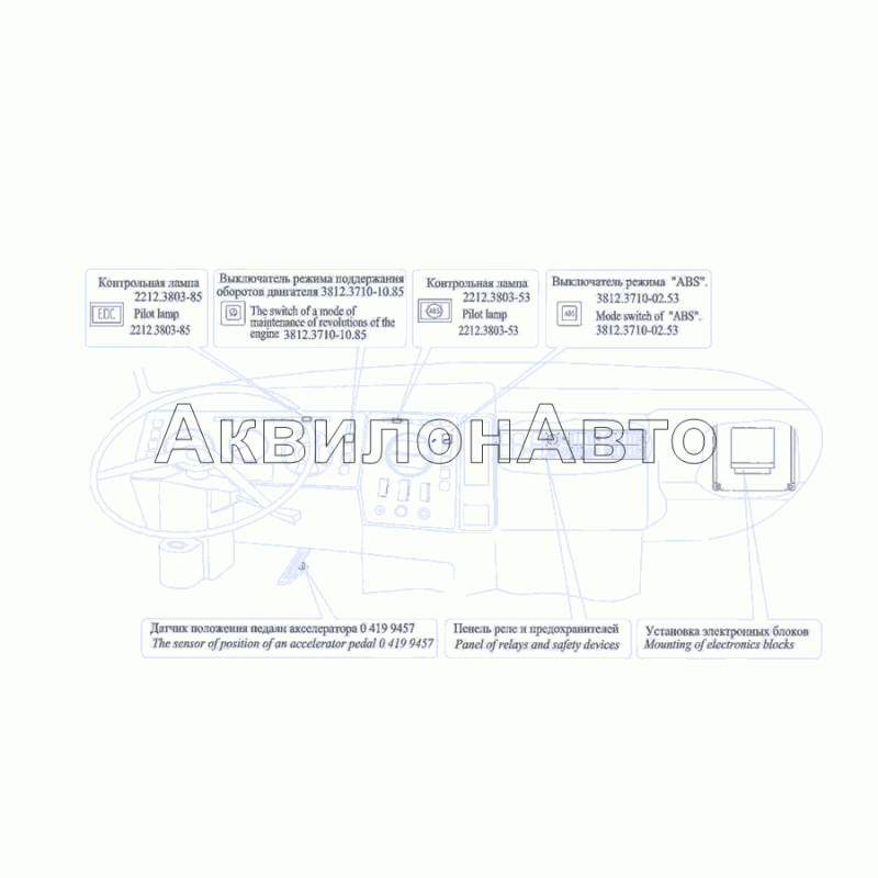 Расположение элементов электронных систем в кабине автомобиля МАЗ- 437030