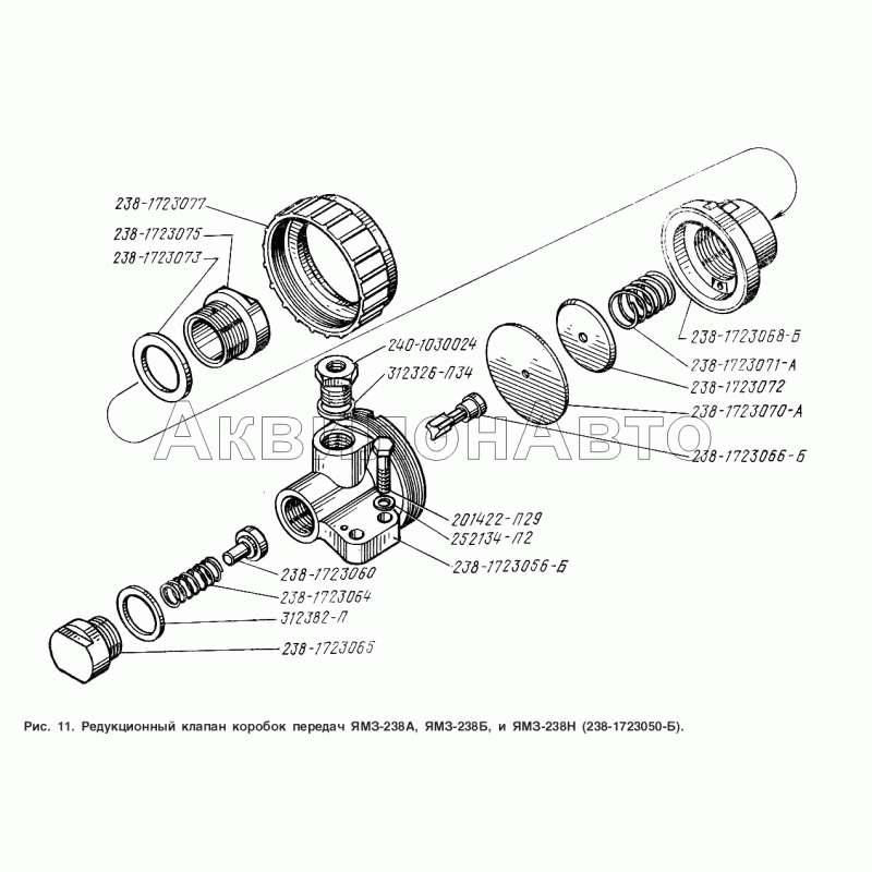 Редукционный клапан коробок передач ЯМЗ-238А, ЯМЗ-238Б, и ЯМЗ-238Н (238-1723050-Б)