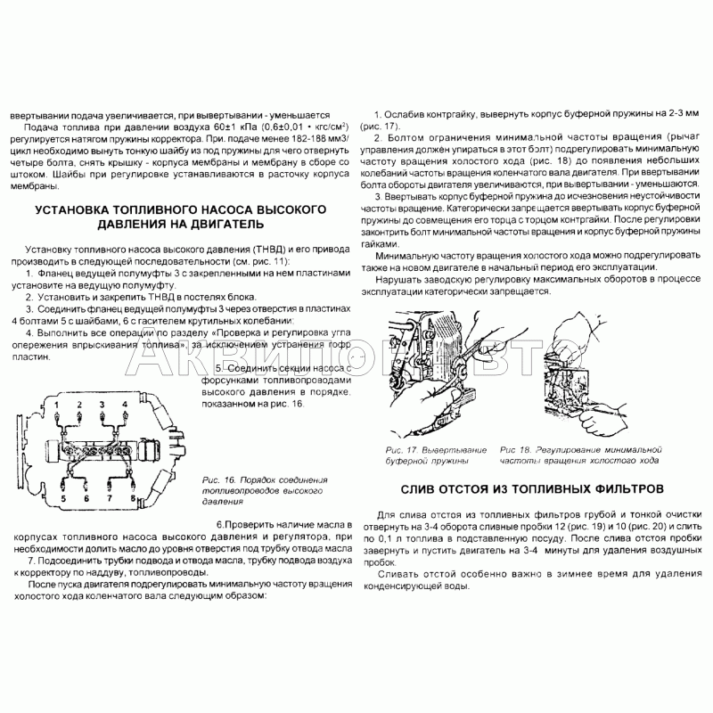 Тех. обслуживание топливной аппаратуры. Установка топливного насоса высокого давления. Слив отстоя из топливных фильтров