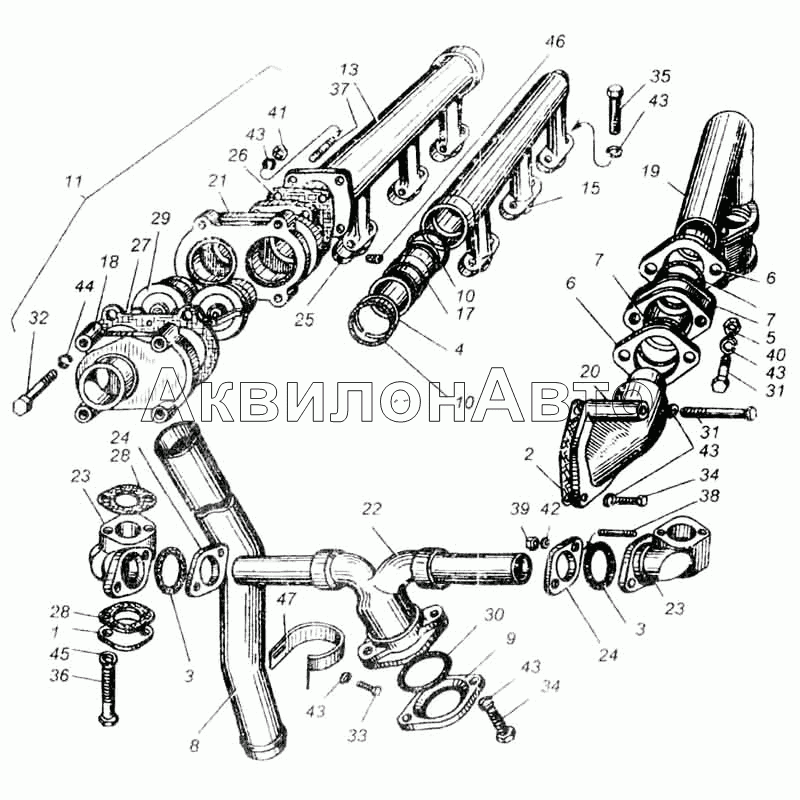 | 15 | 240-1303108-Б | Труба водяная задняя правая в сборе | |