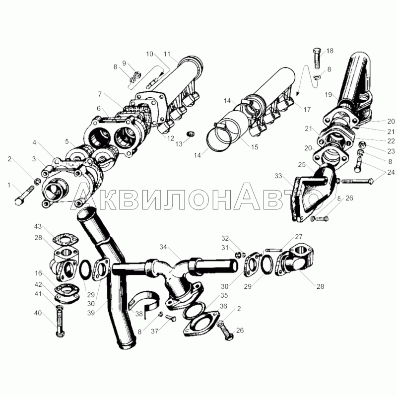 | 17 | 240-1303108-В | Труба водяная задняя правая в сборе | |