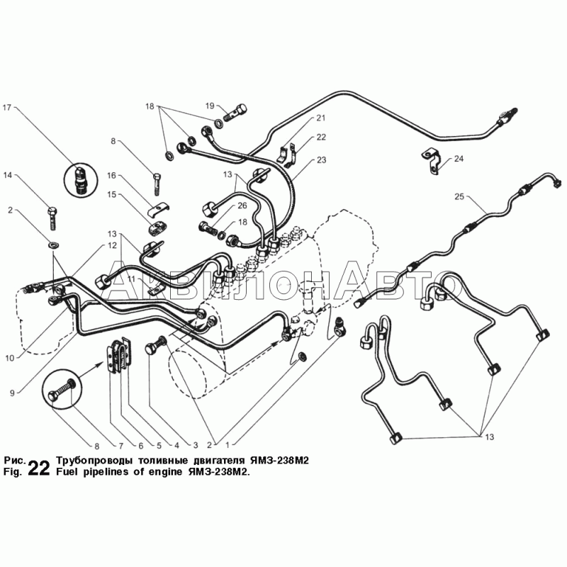 | 23 | 236-1104334 | Трубка отвода топлива от плунжерных пар в сборе | |