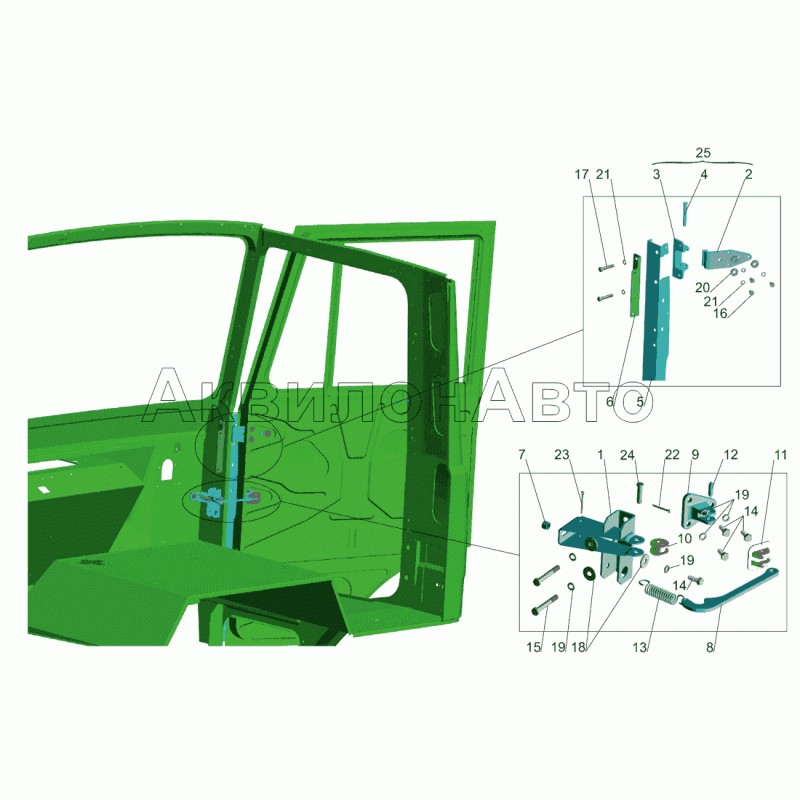 • Установка  ограничителя и петель двери