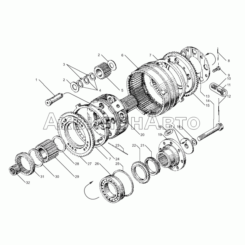 27 239.1721168-10 Муфта зубчатая низшего диапазона со штифтом в сборе