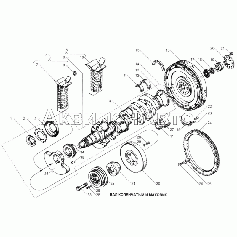 Вал коленчатый с шестерней и маслоотражателями в сборе