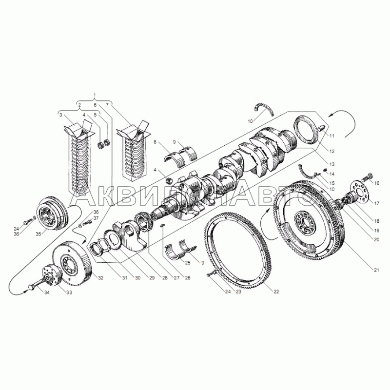 | 6 | 238ДК-1005009-30 | Вал коленчатый с шестерней и маслоотражателями в сборе |