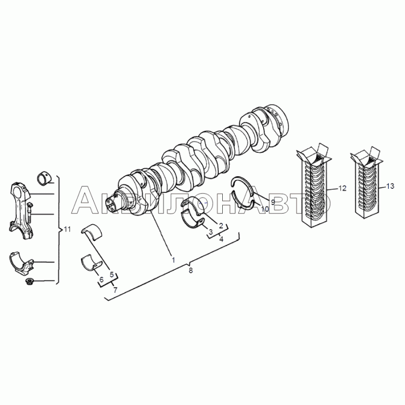 | 13 | 650.1000104-Р2 | Комплект вкладышей нижних головок шатунов 2-й ремонтный | |