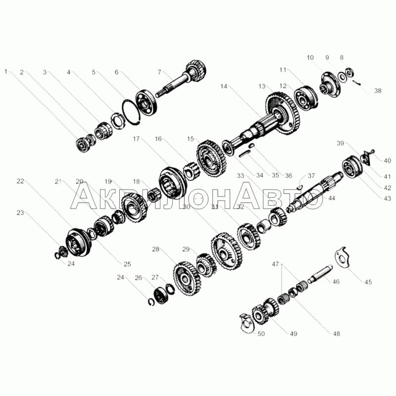 Валы и шестерни коробки передач ЯМЗ-236Н
