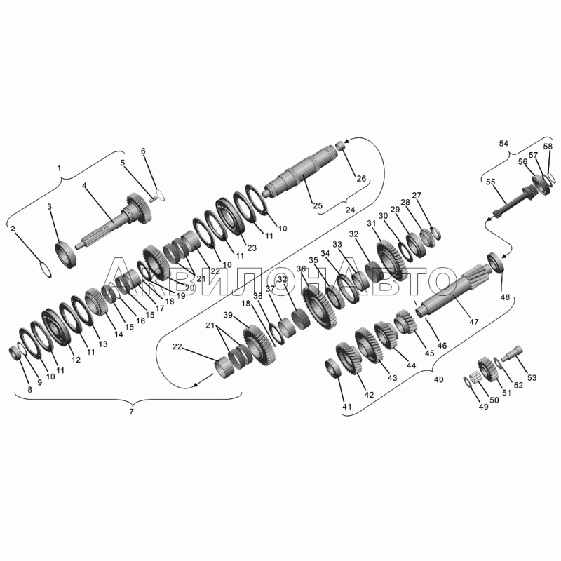 | 7 | 09.130.1701100-20 | Вал вторичный коробки передач в сборе | |