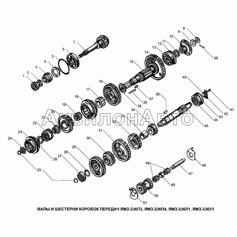 Валы и шестерни коробок передач ЯМЗ-236П3, ЯМЗ-236П4, ЯМЗ-236Л1, ЯМз-236У3