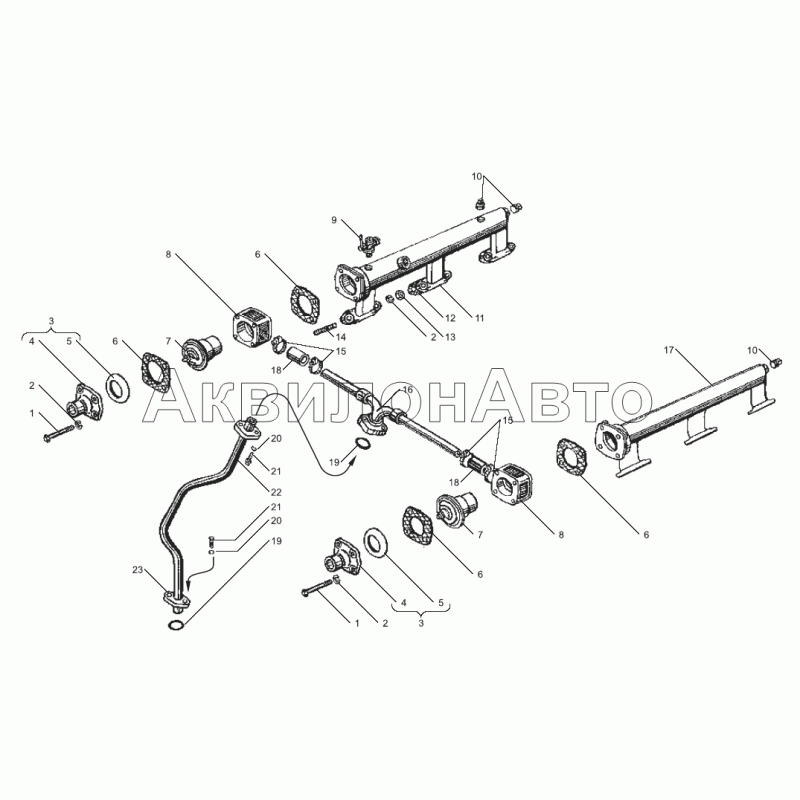 Водяные трубы и термостаты системы охлаждения двигателей с общими головками цилиндров