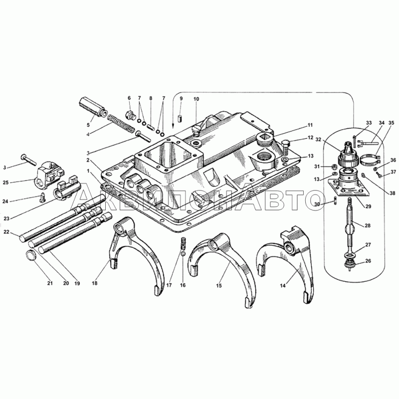 | 19 | 238-1702074 | Шток вилки переключения третьей и четвертой передач | |