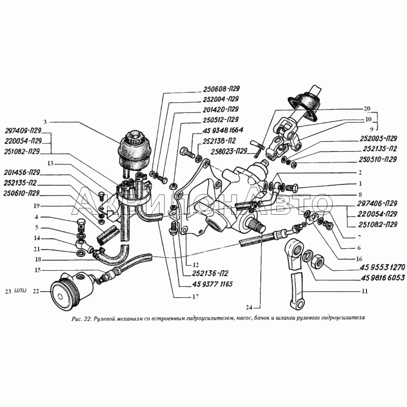 • Рулевой механизм со встроенным гидроусилителем, насос, бачок и шланги рулевого гидроусилителя