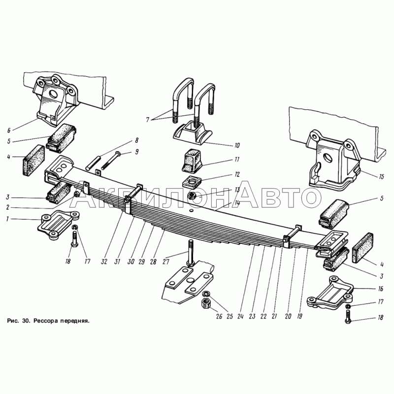 | 32 | 53А-2902052 | Лист № 8 передней рессоры с хомутами в сборе | |