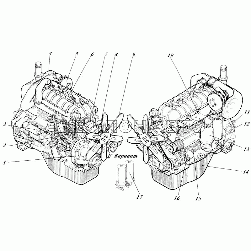 | 9 | 444-13с1 | Насос водяной и вентилятор | |