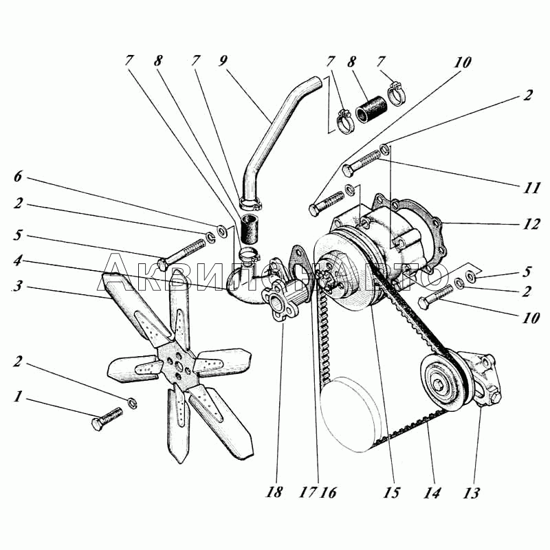| 444-13с1 | Насос водяной и вентилятор | ||