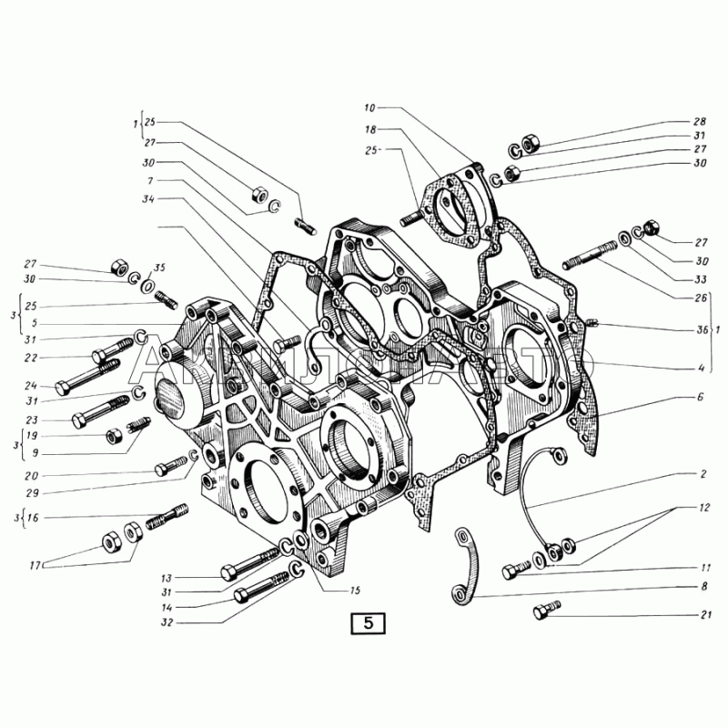 Картер и передняя крышка распределительный зубчатых колес СМД-14НГ,-14БН,-15Н,-19,-20