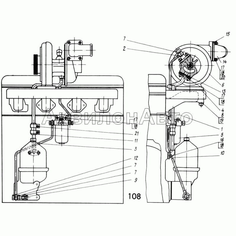 Установка турбокомпрессора СМД-14НГ,-14БН,-15Н,-19,-20