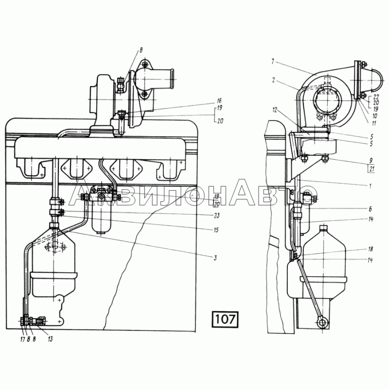 Установка турбокомпрессора СМД-14НГ,-14БН,-15Н,-19,-20