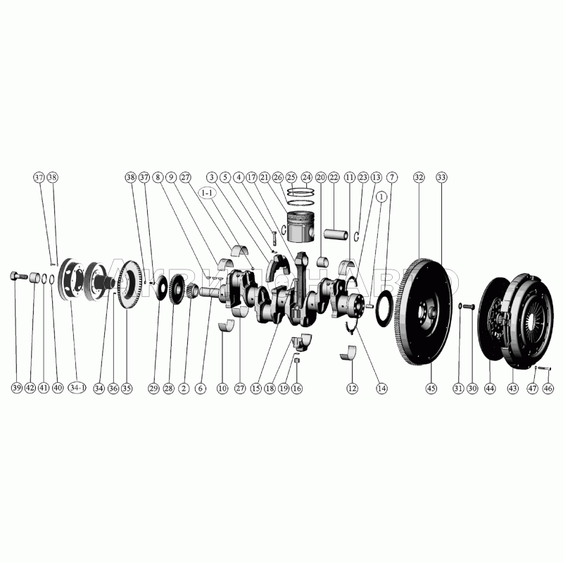 Кривошипно-шатунный механизм. Установка шкива коленчатого вала. Установка муфты сцепления.