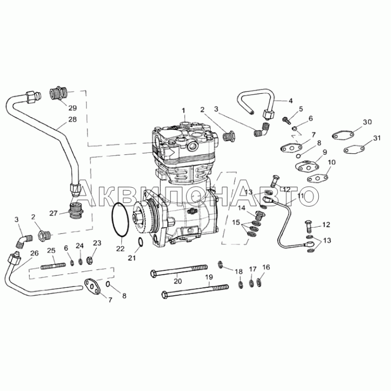8481.3509010 Компрессор пневматического тормоза в сборе с уплотнительными кольцами, ввертышами, угольниками