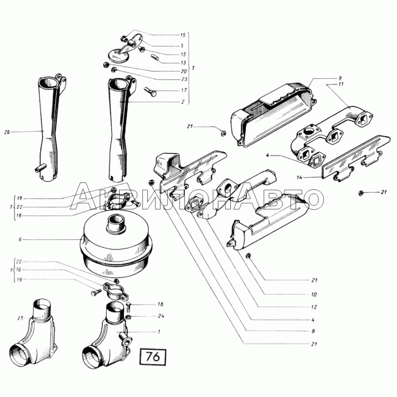 Система выпускная СМД-60, -62, -64, -66, -72, -61, -63, -65, -73