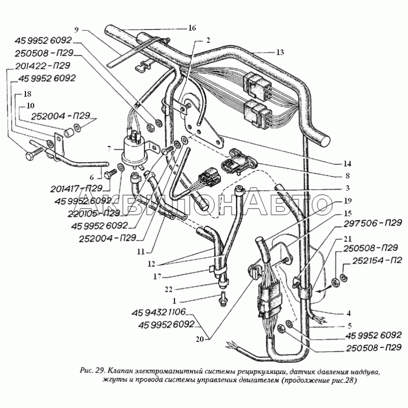 • Клапан электромагнитной системы рециркуляции, датчик давления наддува, жгуты и провода системы управления двигателем