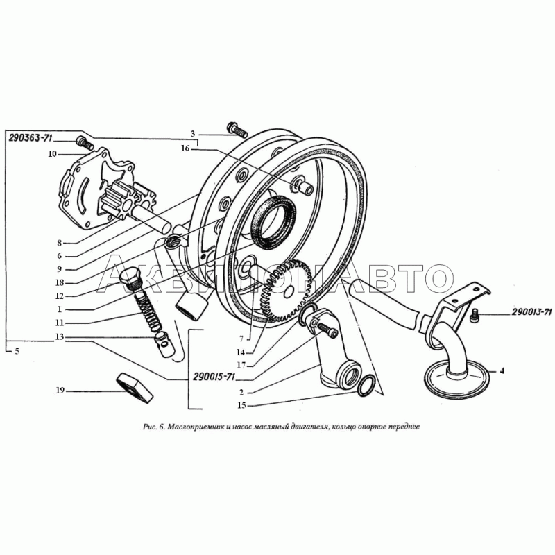 Маслоприемник и насос масляный двигателя, кольцо опорное переднее
