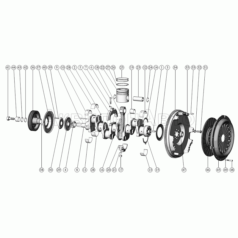 Кривошипно-шатунный механизм. Установка маховика. Установка шкива. Установка муфты сцепления.