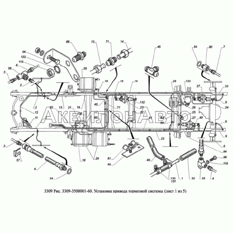 | 22 | 3309-3506260 | Трубка от нижней секции тормозного крана к пневмоусилителю передних тормозов | |