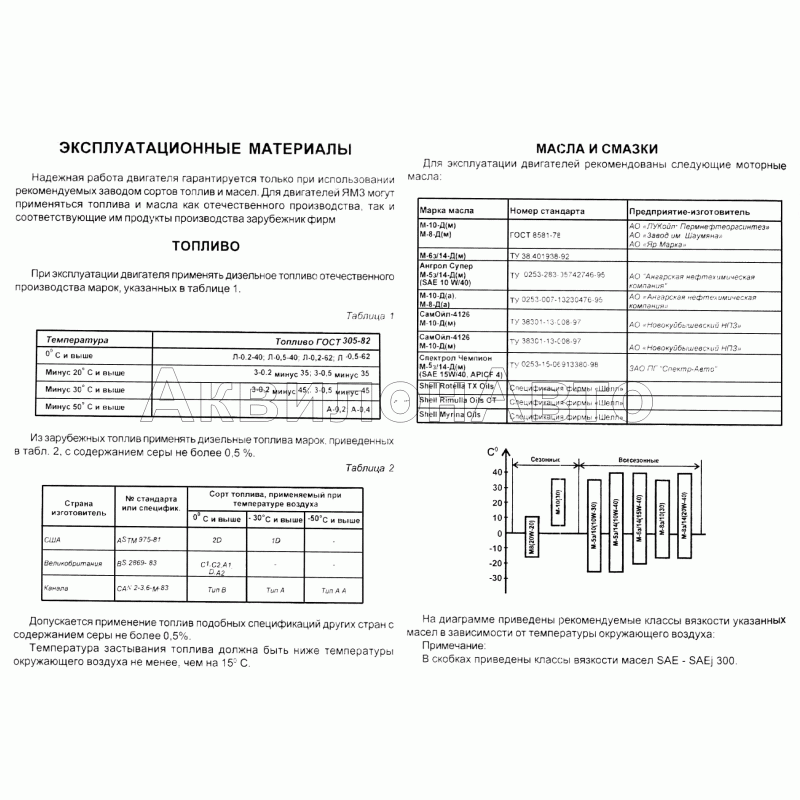 Эксплуатационные материалы, топливо, масла и смазки