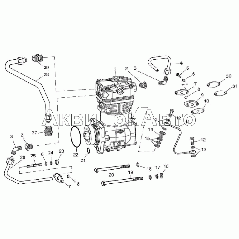 | 8481.3509010 | Компрессор пневматического тормоза в сборе с уплотнительными кольцами, ввертышами, угольниками | ||